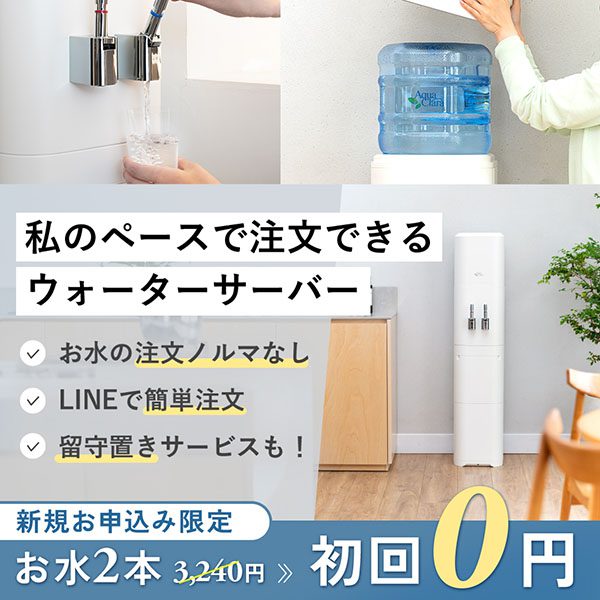 アクアクララは自社配送で配送コストが抑えられるため12Lボトル1本1,620円とお水代が他のウォーターサーバーと比較して格安であり、購入ノルマもないため、ご自身のペースで注文できるのが嬉しいです。